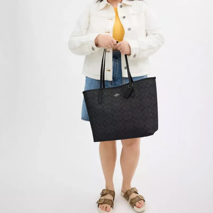 COACH Городская Сумка из искусственной кожи Сумка для покупок Сумка Большая Женская Угольно-черная