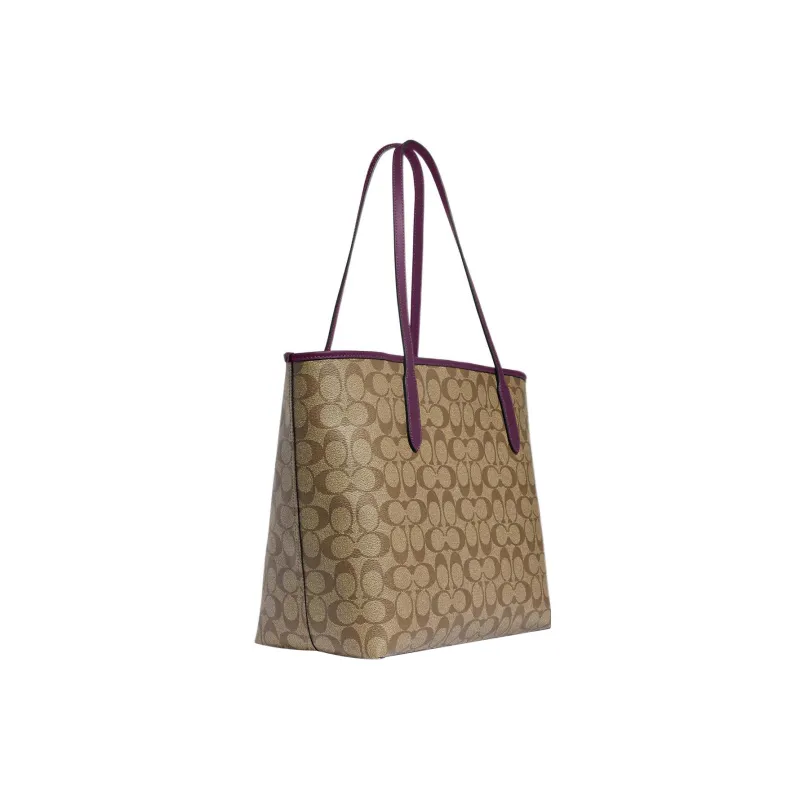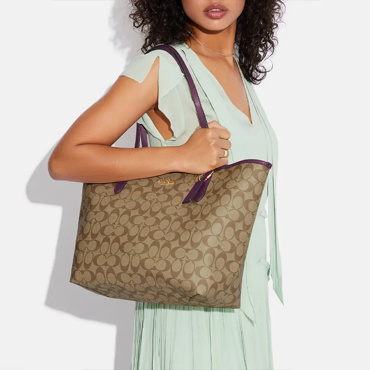 COACH City Canvas с кожаными вставками сумка через плечо женская хаки