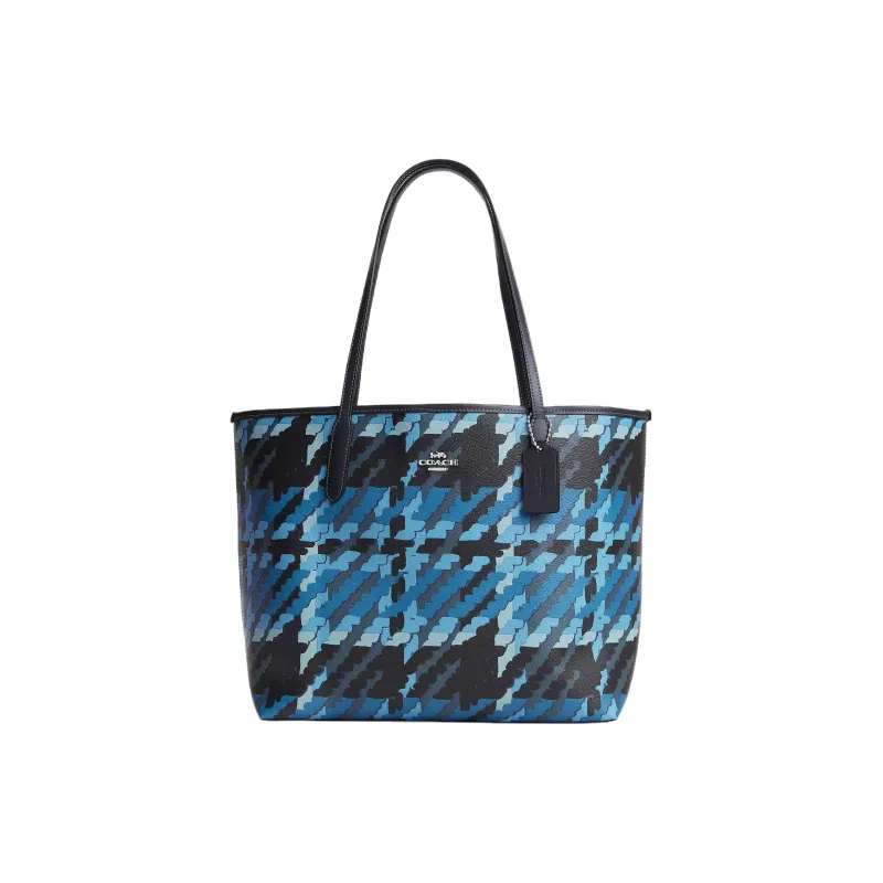 COACH City Canvas с кожаными вставками Тоут Сумка Сумка для покупок Сумка на плечо Сумка Обычный Women's Silver Синий Многоцветный