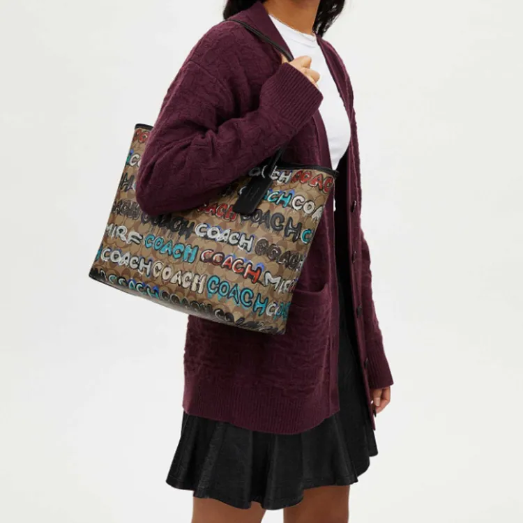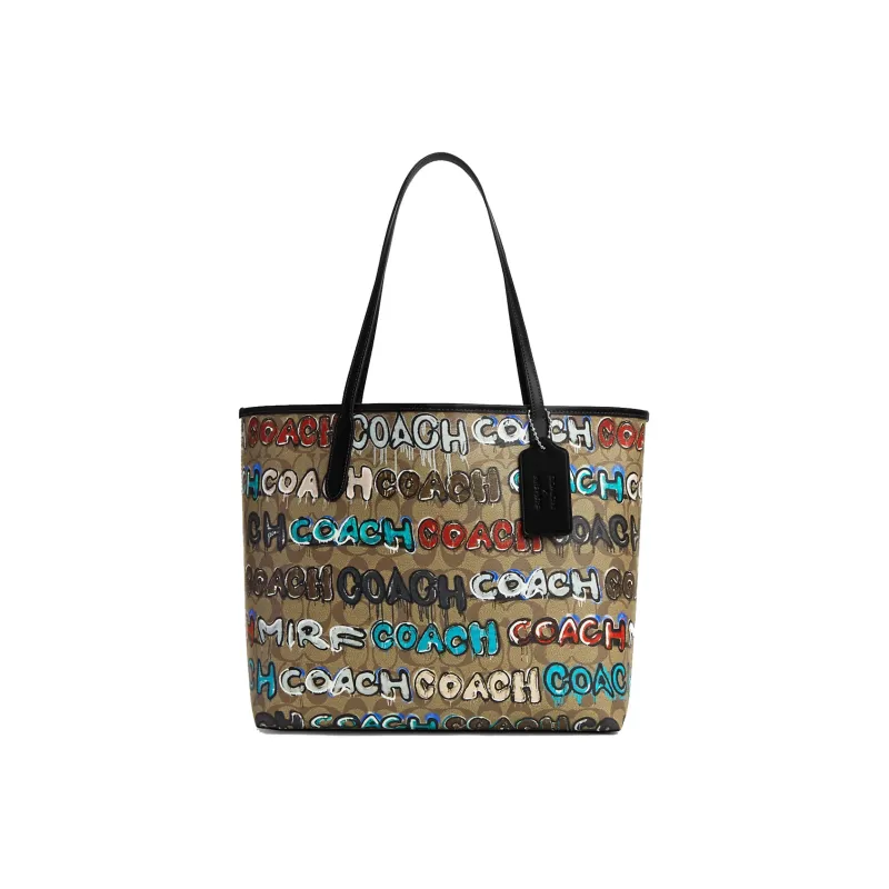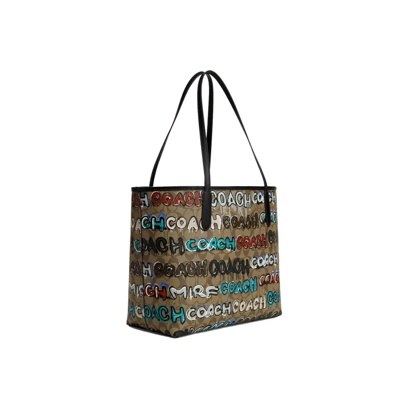 COACH Мята X Serf Коллаборация City Canvas Кожаная Вставка Холст Сумка Сумка-тоут Сумка для покупок Сумка через плечо