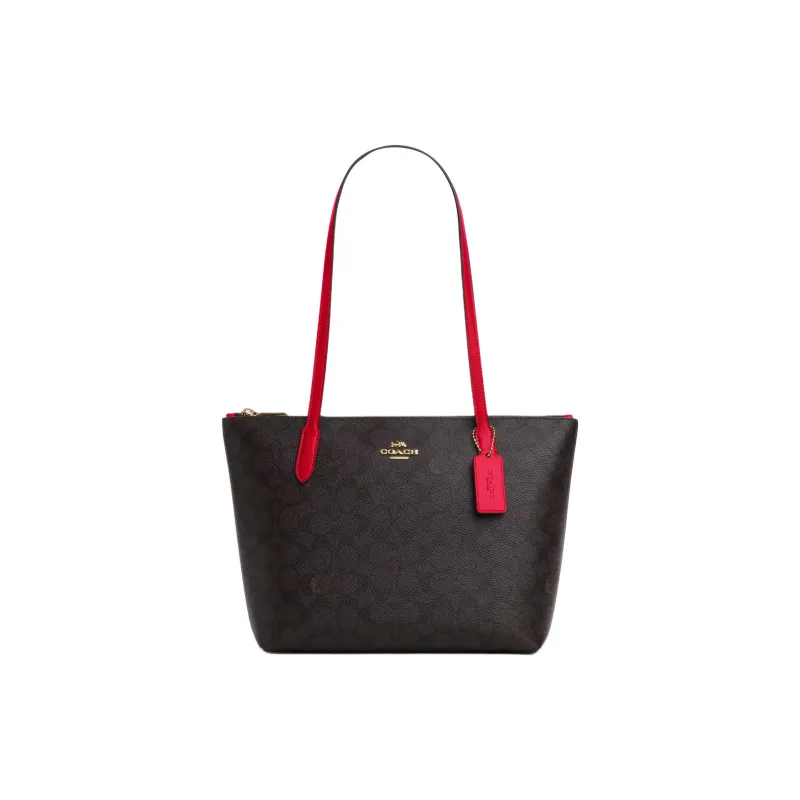 COACH Покрытый холст Тоут Сумка Сумка для покупок Сумка на плечо Средний Женская Цвет ореховый