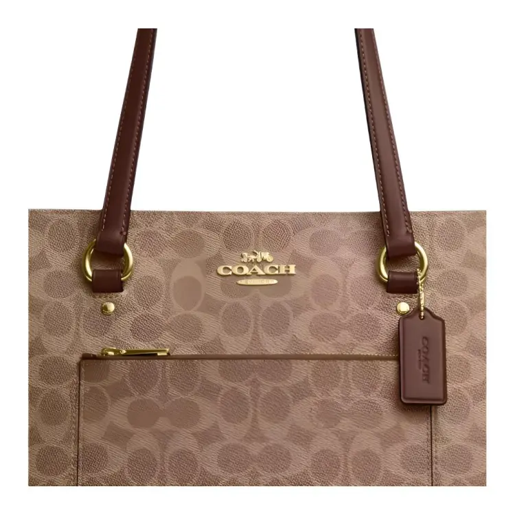 COACH Покрытый холст Тоут Сумка Сумка для покупок Сумка на плечо Унисекс Коричневый