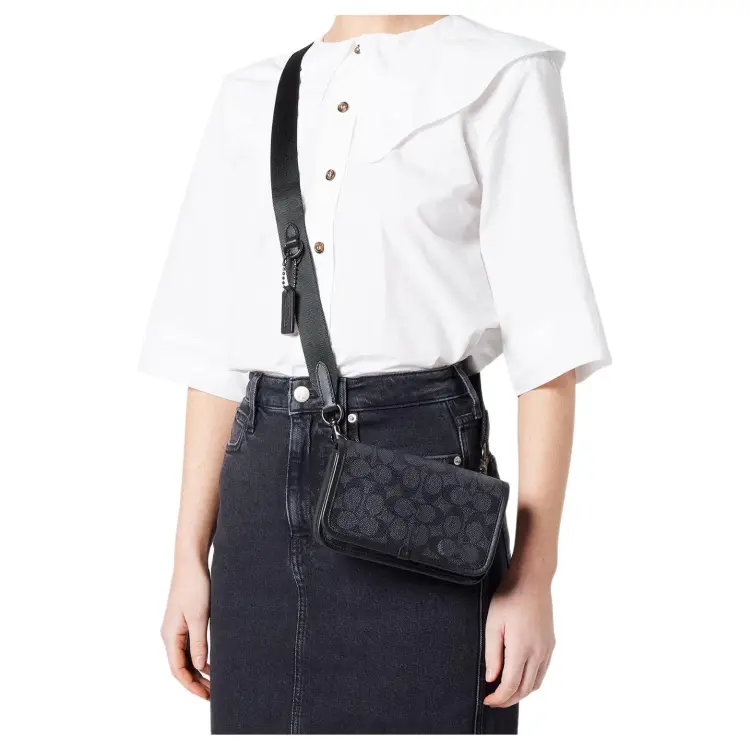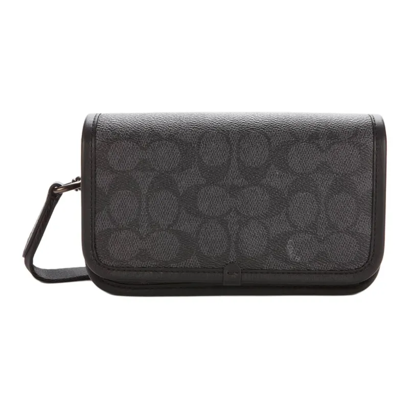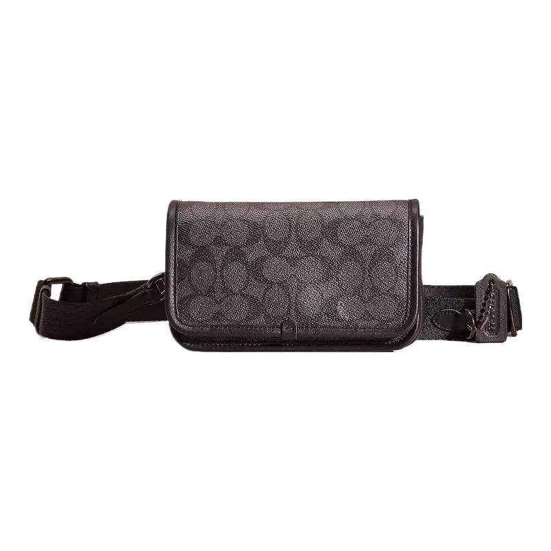 COACH Покрытый холст с телячьей кожей Чехол для телефона Бананка Сумка через плечо Маленький Унисекс Уголь