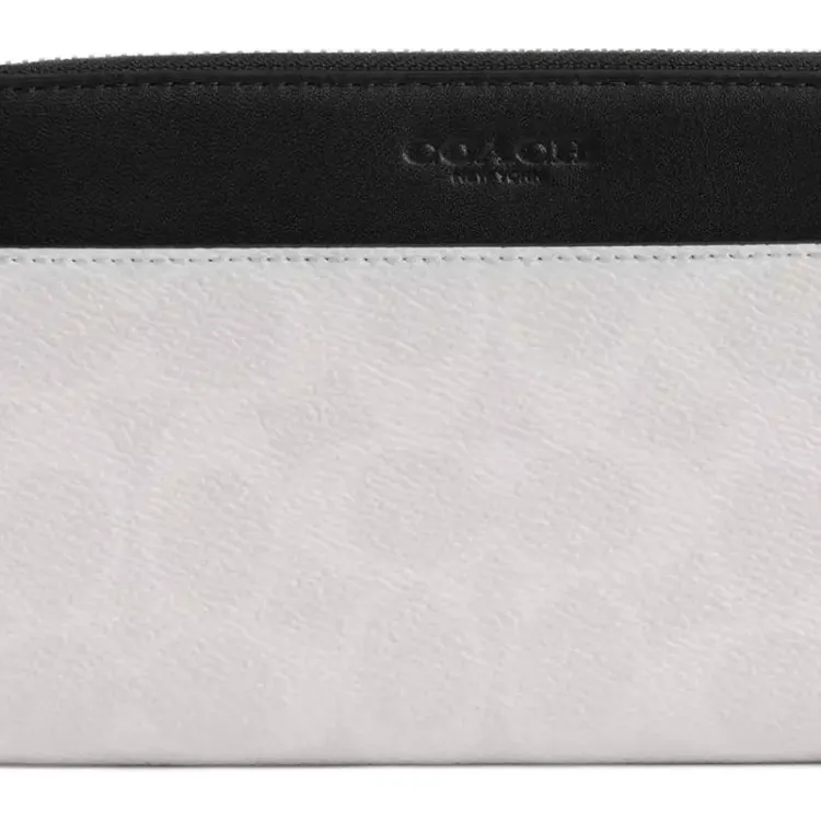 COACH Покрытый холст телячья кожа кошелек маленький мужской серый белый и черный