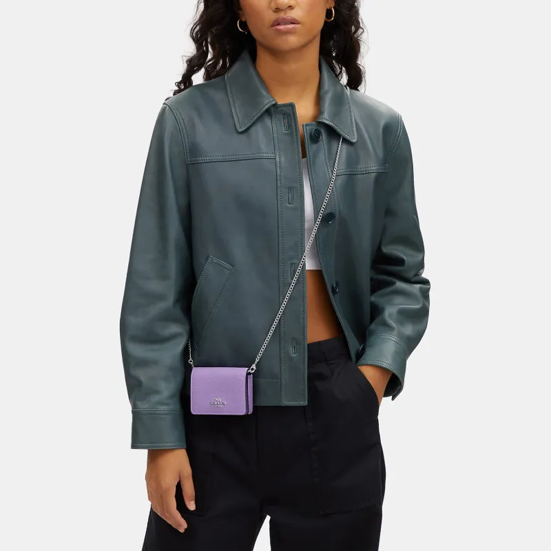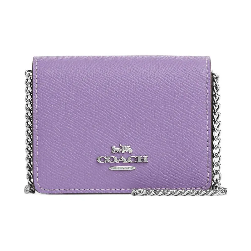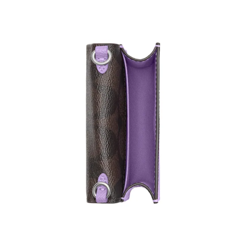 COACH Покрытый холст с кожаными вставками Сумка через плечо Кошелек Мини Женский Фиолетовый