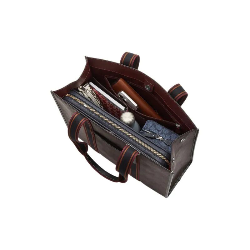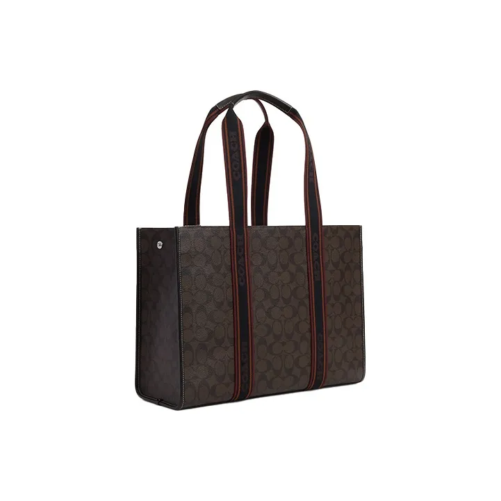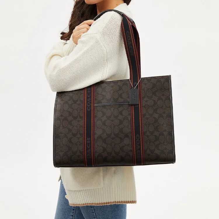 COACH Холст с покрытием и гладкая кожа Тоут Сумка Сумка для покупок Сумка на плечо Сумка Большая Женская Кофейная