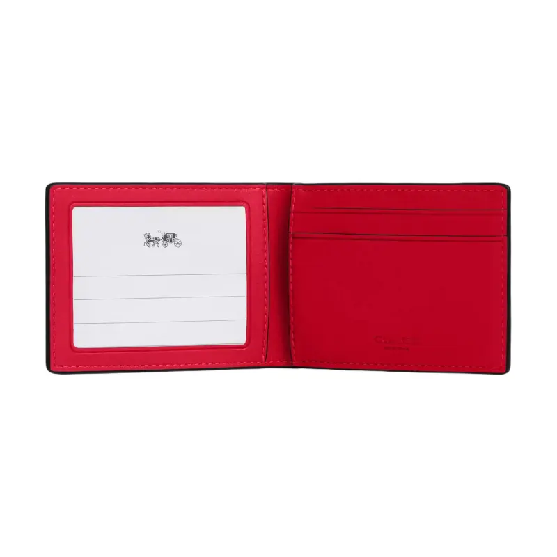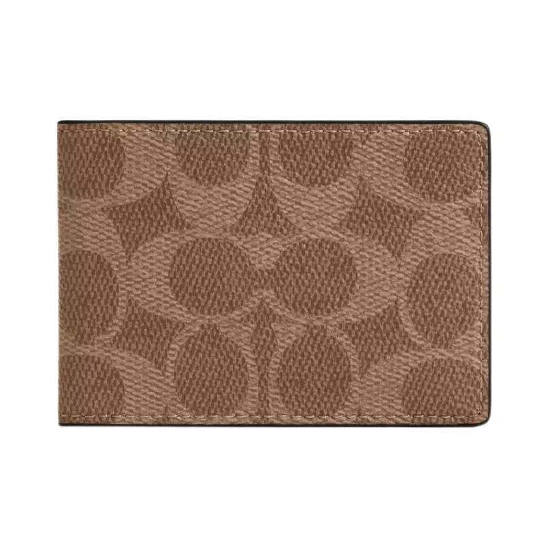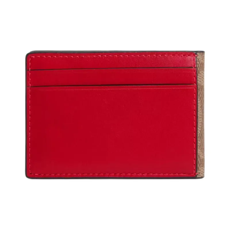 COACH Компактный кошелек из покрытого холста с кожаными вставками маленький женский коричневый и красный