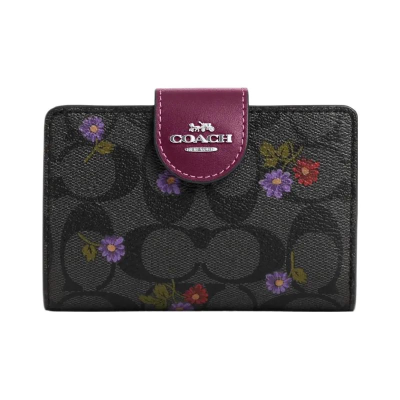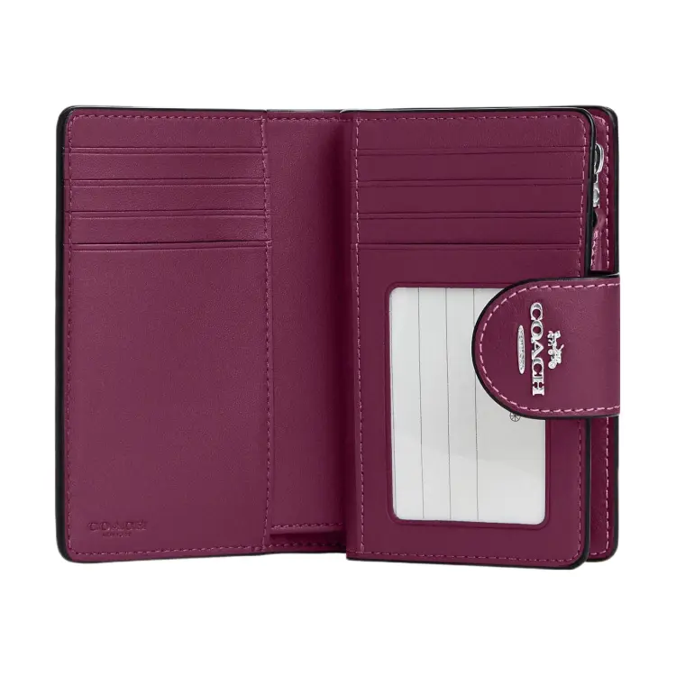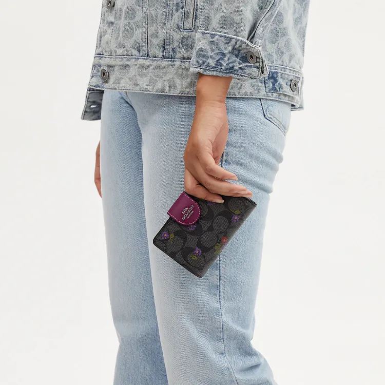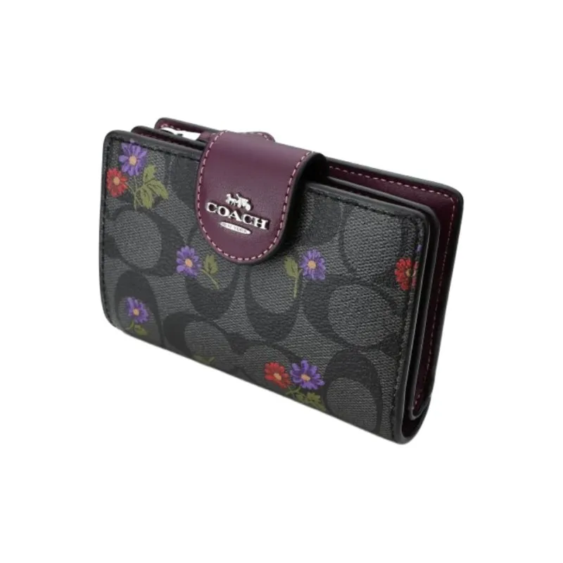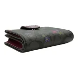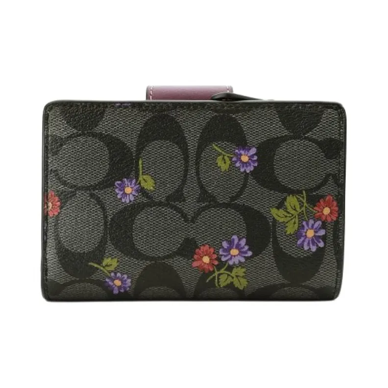 COACH Corner Zip Холст с кожей Мелочь Кошелек Кошелек Обычный Женские Графитовый Темная ягода