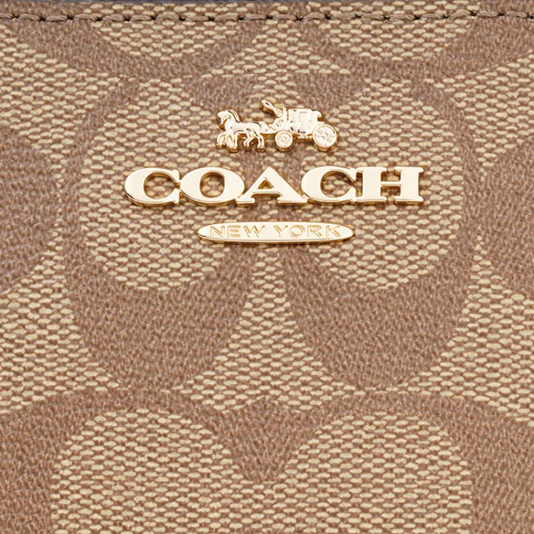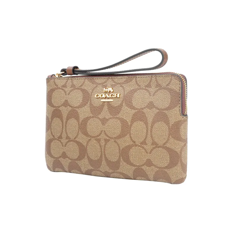 COACH Corner Zip Холст и Кожа Маленькая Сумка-Клатч на Запястье Большая Женская Хаки
