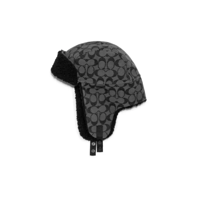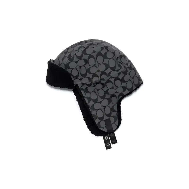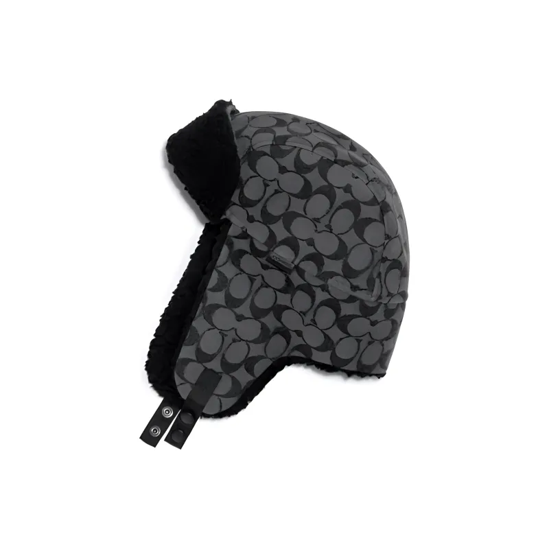 COACH Хлопок Акрил Искусственный мех Кожа Полиэстер Шапка-ушанка Мужская Черная