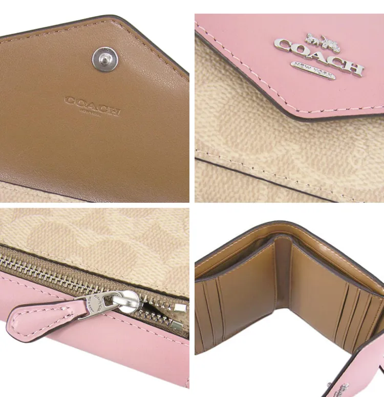 COACH Коровья кожа Холст Клатч Конверт Сумка Кошелек Маленький Женский Розовый Фиолетовый