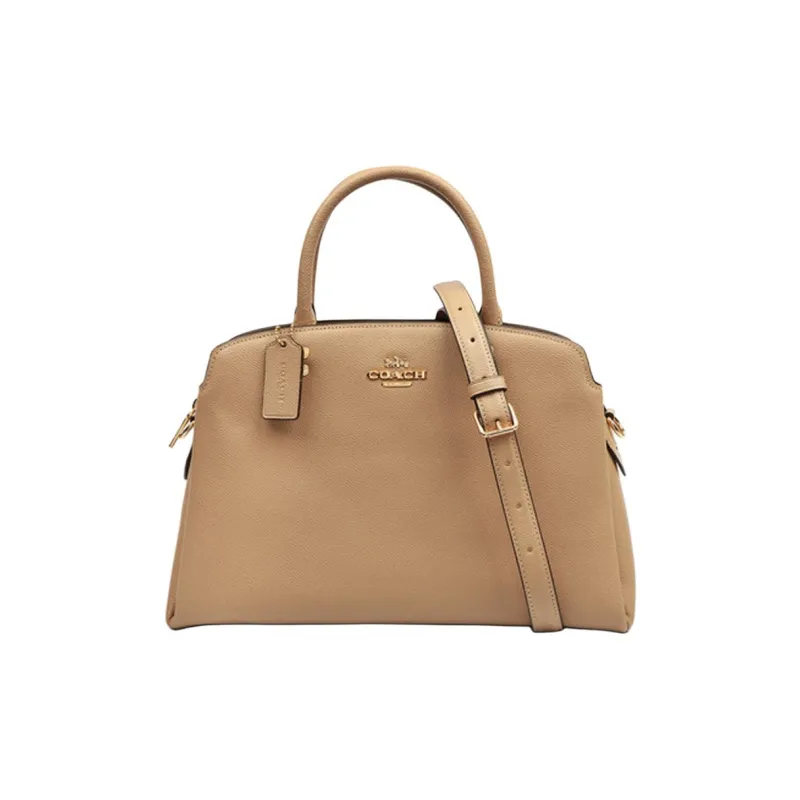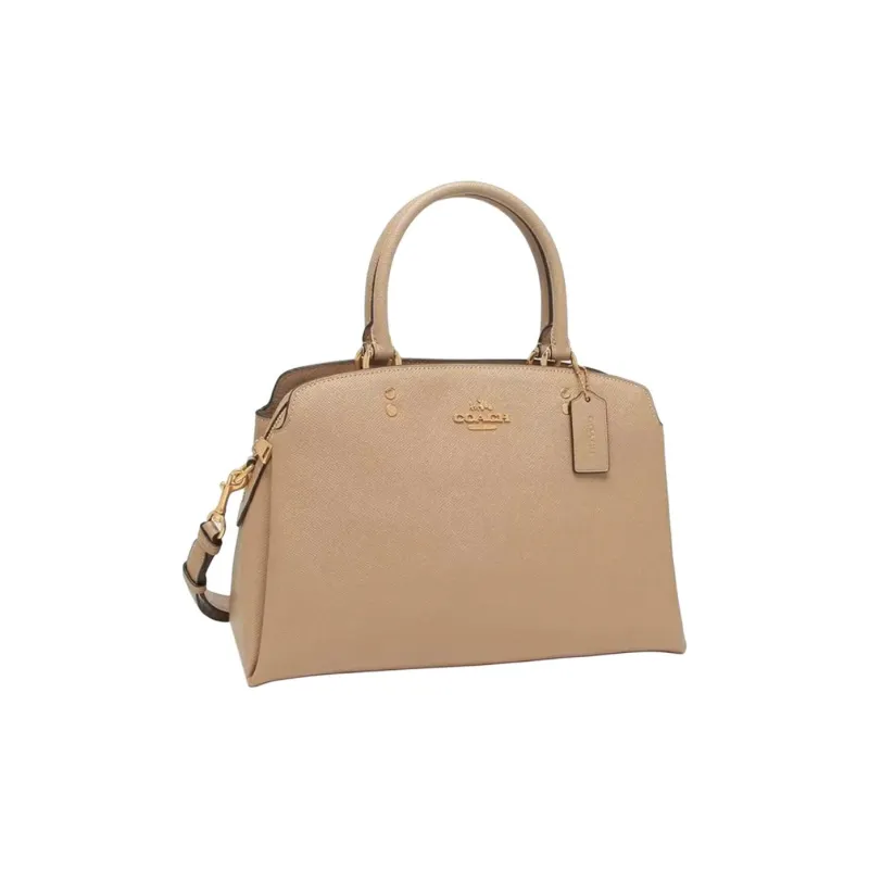 COACH Крестообразная текстура кожа через плечо сумка большая женская Моранди цвет овсяный