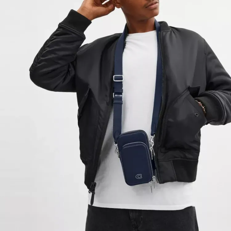COACH Крестообразная текстура кожа через плечо мини мужская темно-синяя