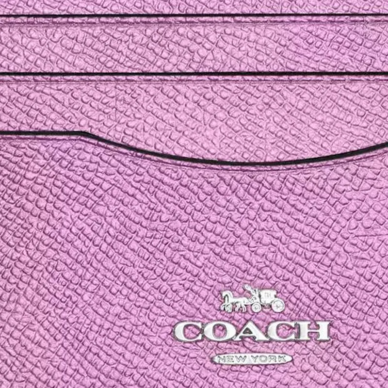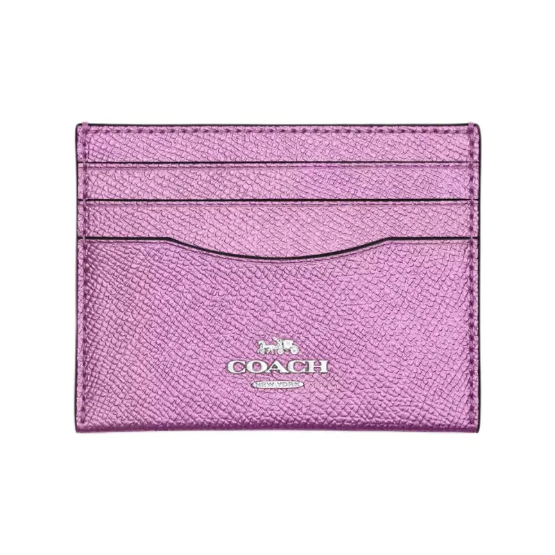 COACH Крестообразная текстура Кожа Мелочь Кошелек Кошелек Women's Silver Металл Сиреневый