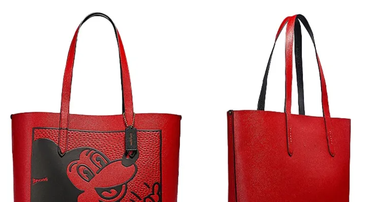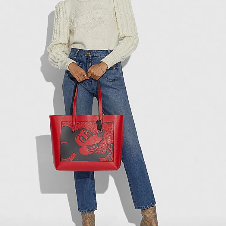 COACH Disney Mickey Коллаборация Кожа Тоут Сумка Сумка для покупок Сумка на плечо Большая Женская Красная
