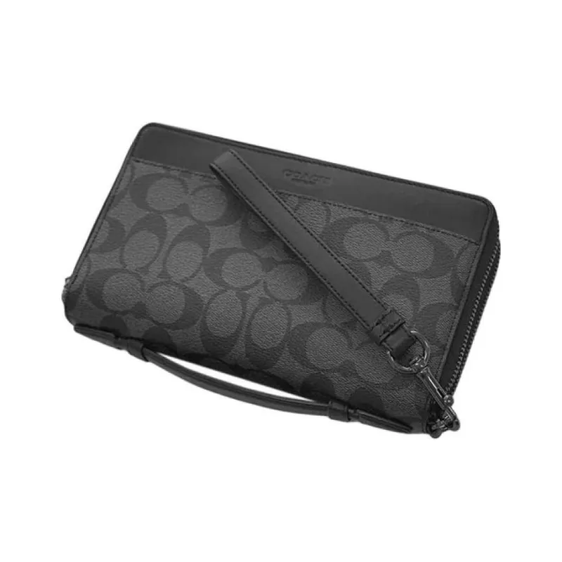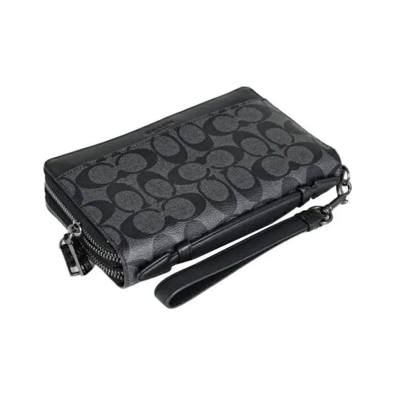 COACH Double Zip Wallet Холст с кожей Запястье Сумка Держатель для карт кошелек Клатч Маленький Мужской Черный