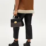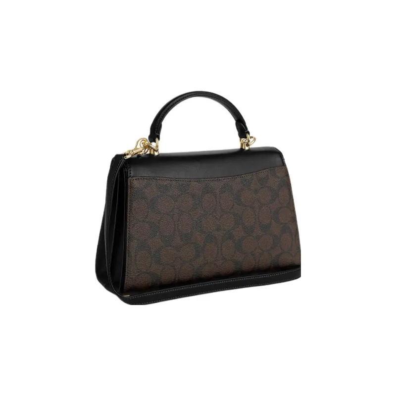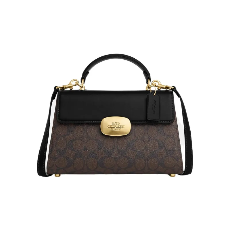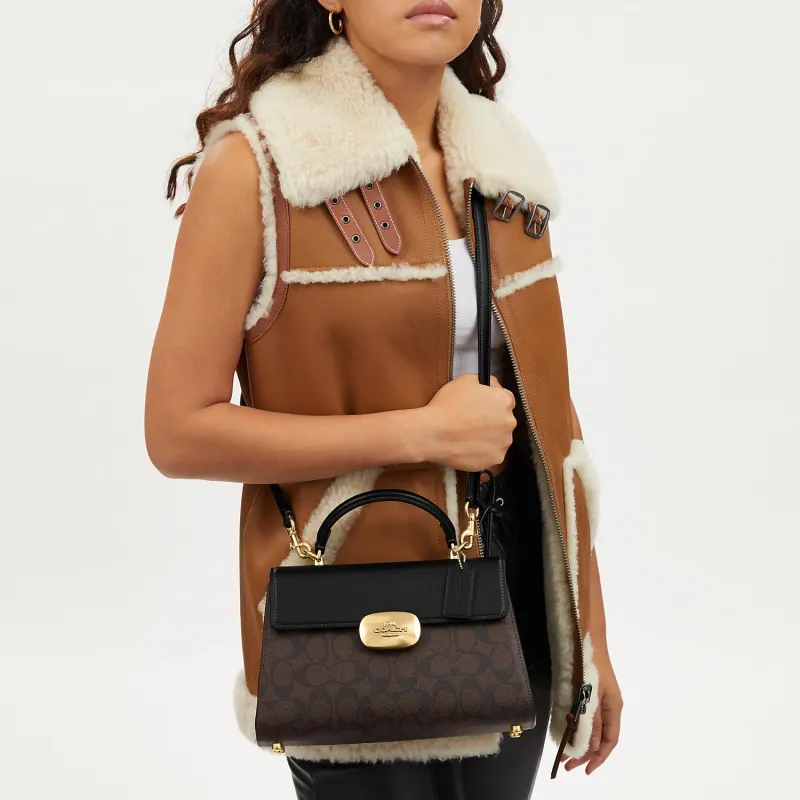 COACH Eliza Холст и Кожаная Сумка Kelly Сумка через плечо Сумка Большая Женская Коричневая и Черная