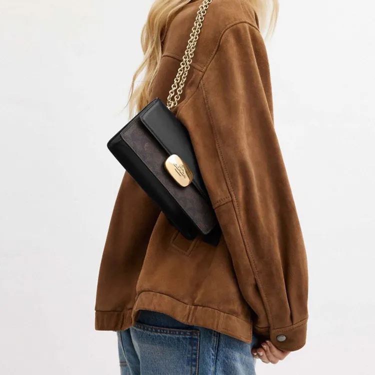 COACH Eliza Холст с покрытием и гладкая кожа Сумка через плечо Средняя Женская Ореховый Черный