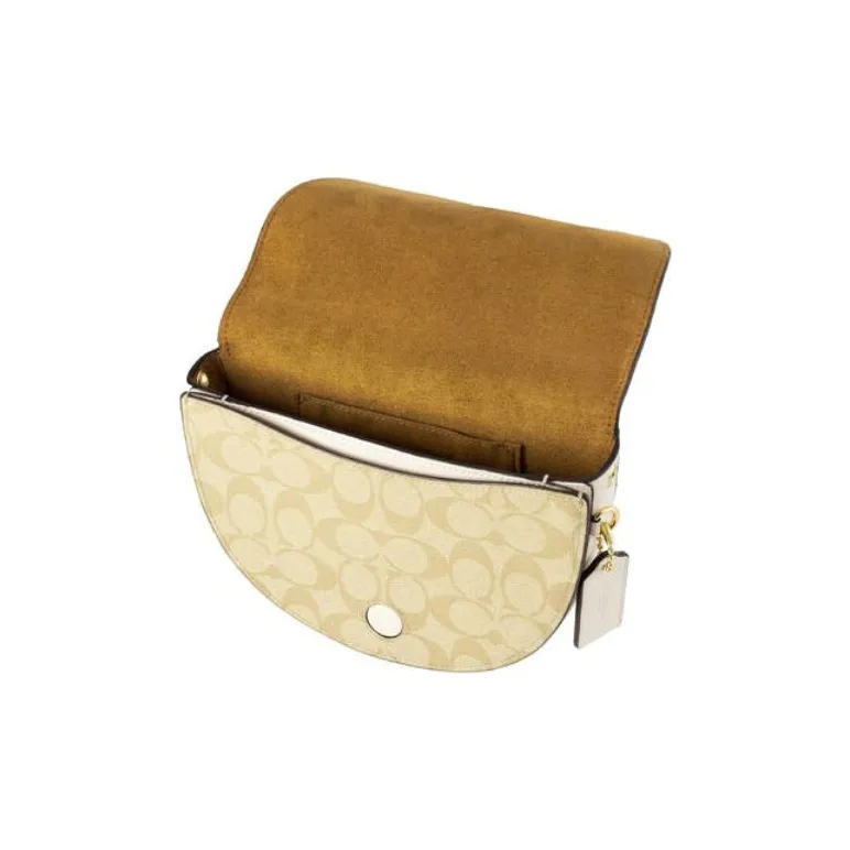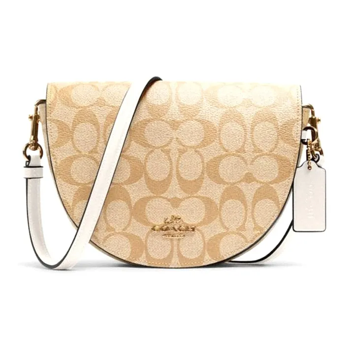 COACH Ellen Холст с кожей Седло Сумка Сумка через плечо Маленькая Женская Белая и Хаки