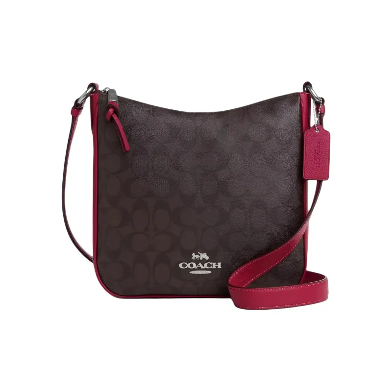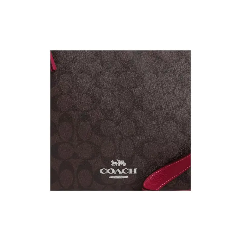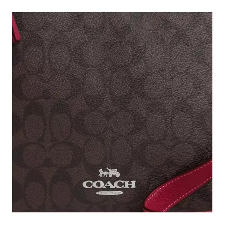 COACH Ellie Галька текстура Холст с кожей Сумка для документов Сумки через плечо Сумка через плечо Женская Кофейная и Красная