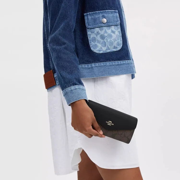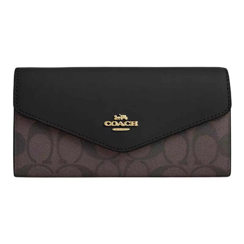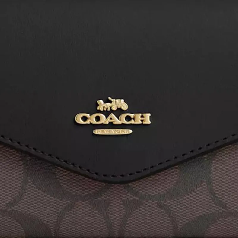 COACH Конверт Высокое качество Кожа с холстом покрытие кошелек маленький женский коричневый черный