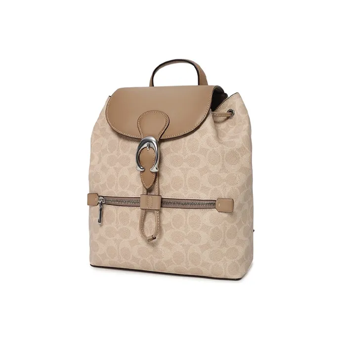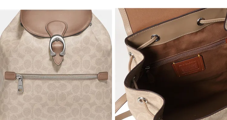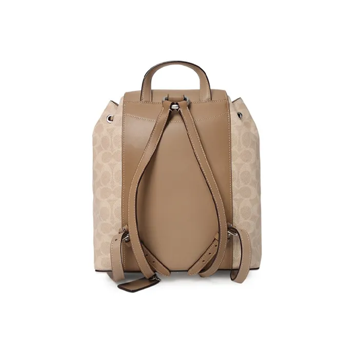 COACH Evie Canvas Leather Backpack Medium Women's Light Khaki Monogram Worn Brown