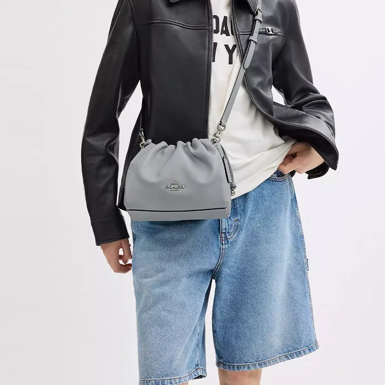 COACH Faye Гладкая кожа Сумка через плечо Сумка на плечо Маленькая Женская Серо-синяя