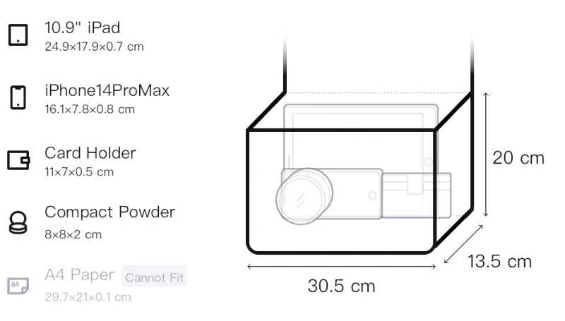 Длина 30,5 см * Ширина 13,5 см * Высота 20 см