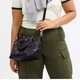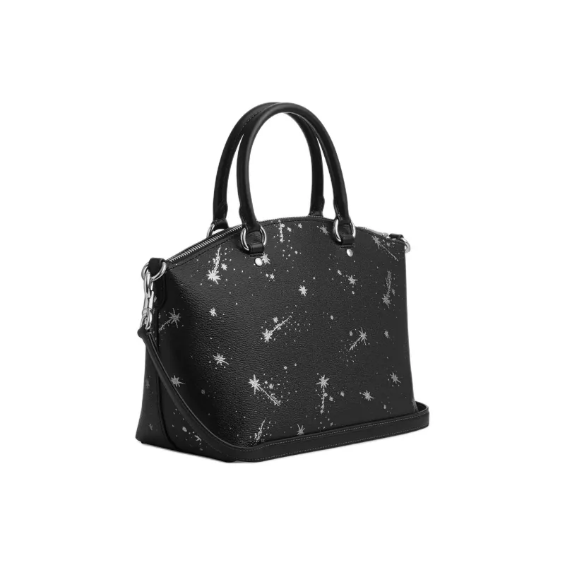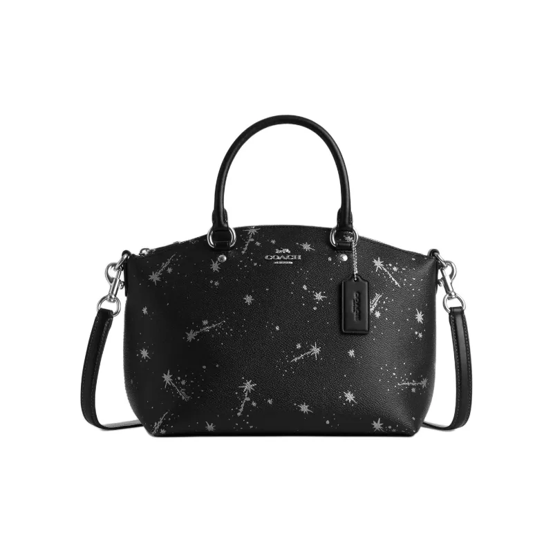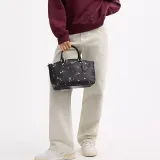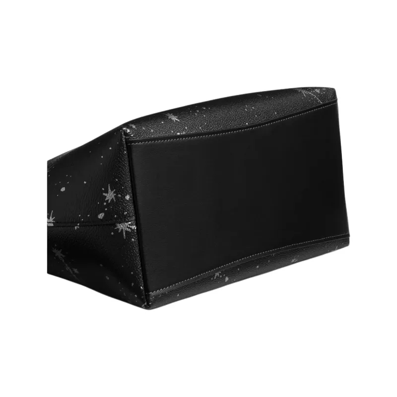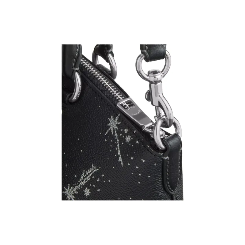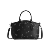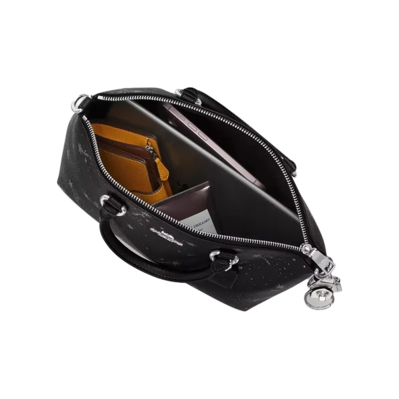 COACH Fiona Холст с покрытием и гладкая кожа Сумка Большая Женская Серебряный и Черный