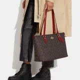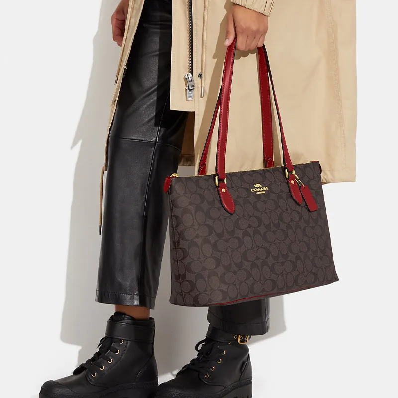 COACH Gallery Холст и Кожа Тоут Сумка Сумка для покупок Сумка Сумка через плечо Женская Коричневая
