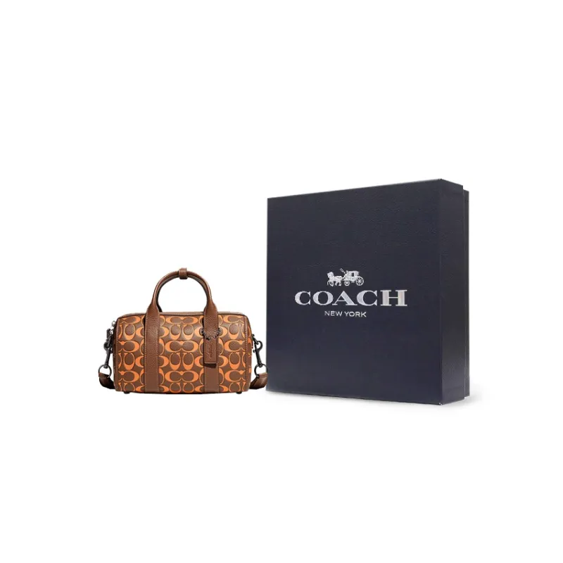 COACH Gotham Кожа Путешественная Сумка Бостон Сумка Сумка через плечо Сумка среднего размера Мужская Апельсиновая Монограмма