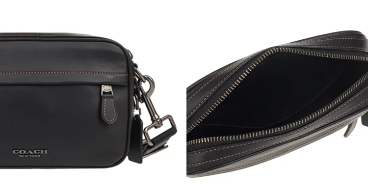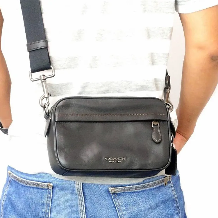 COACH Graham Коровья кожа Camera Сумка Сумка через плечо Средний Мужской Черный