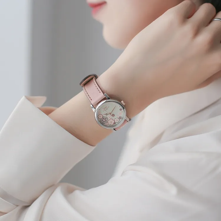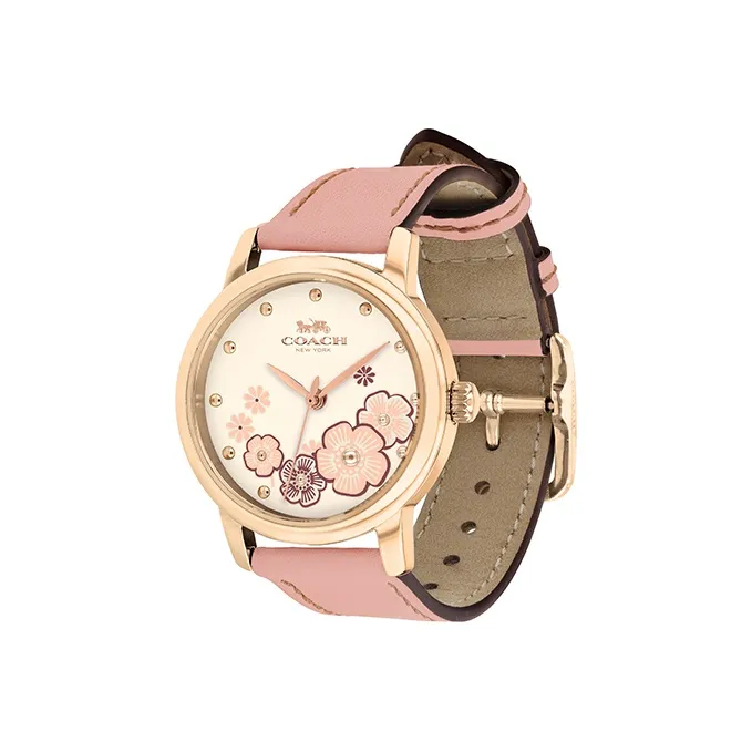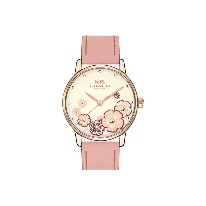 COACH Grand Наручные часы Кварцевый механизм Натуральная кожа Ремешок Розовый Циферблат часов Женские часы