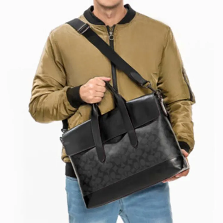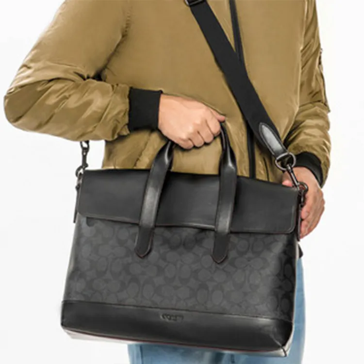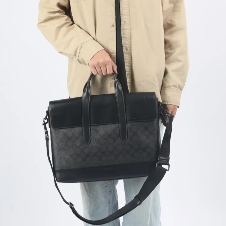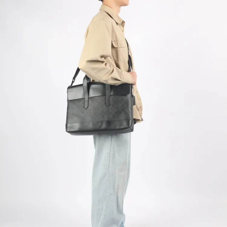 COACH Hamilton Холст Телячья кожа Ноутбук Сумка Деловая сумка Сумка через плечо Сумка Большая Мужская Черная Монограмма