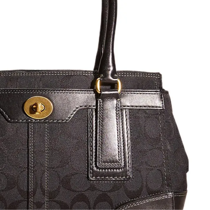 COACH Hamptons Ткань Тоут Сумка Сумка для покупок Сумка среднего размера Женская Черная