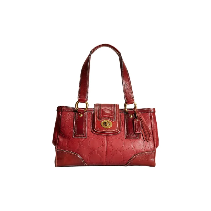 COACH Hamptons Кожа Сумка на плечо Большая Женская Латунь и Красный