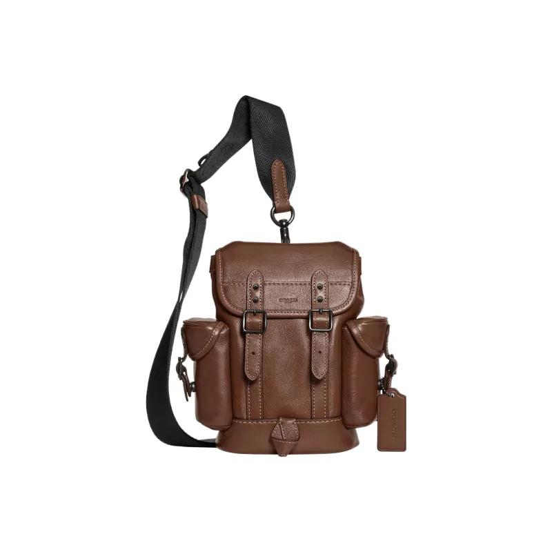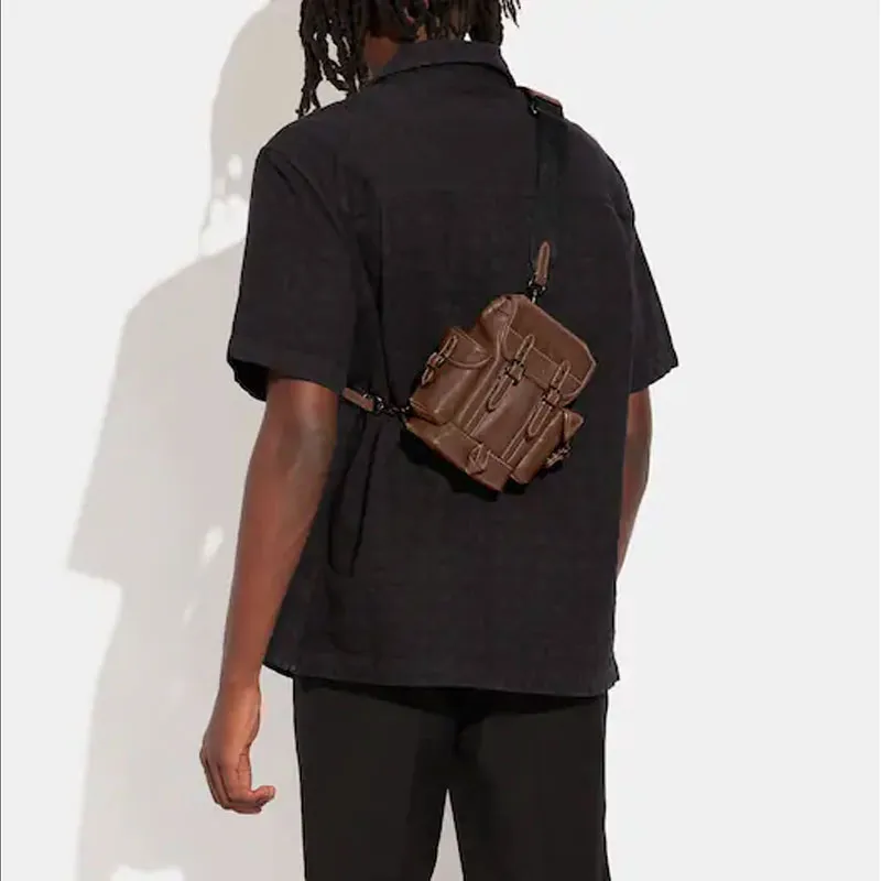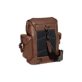 COACH Hitch Коровья кожа с тканевым ремнем Сумка через плечо Мини Мужская Темно-коричневая
