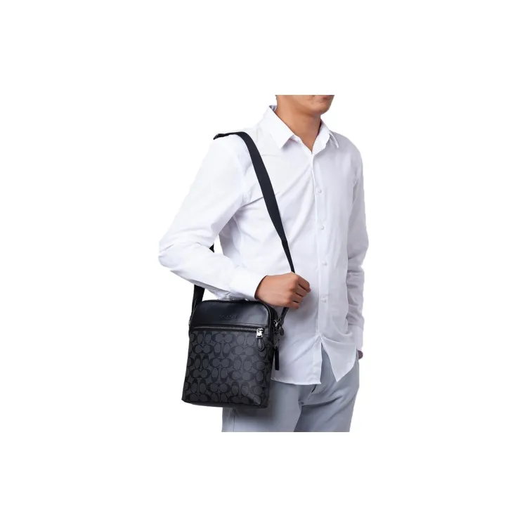 COACH Houston Покрытый холст с утонченной коровьей кожей Сумка через плечо Маленькая Мужская Угольно-черная