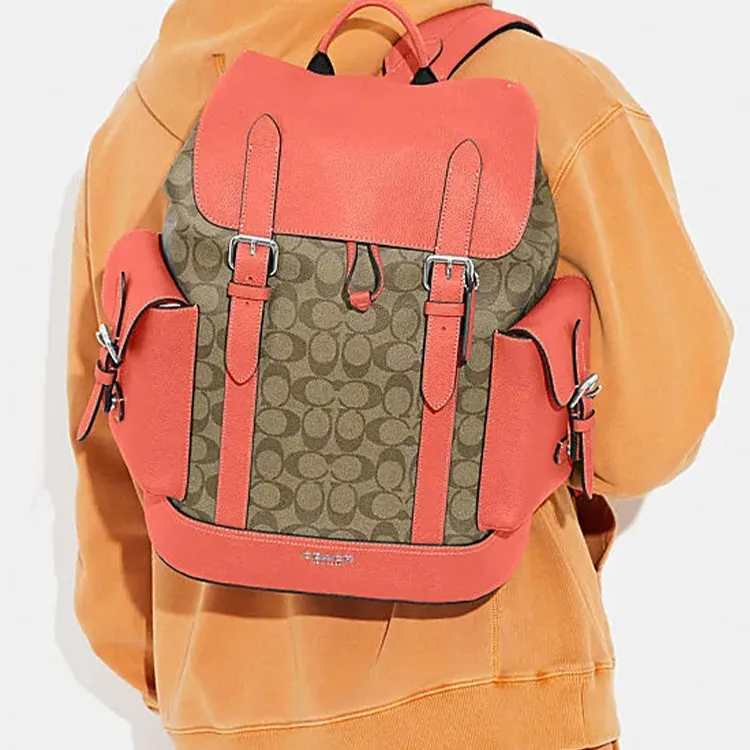 COACH Hudson Коровья кожа Рюкзак Большой Мужской Апельсин Коричневый