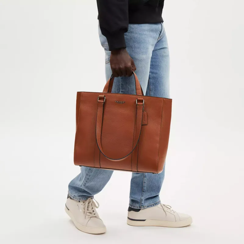 COACH Hudson Утонченный Каменная Кожа Тоут Сумка Сумка для покупок Сумка на плечо Сумка Большая Мужская Седло