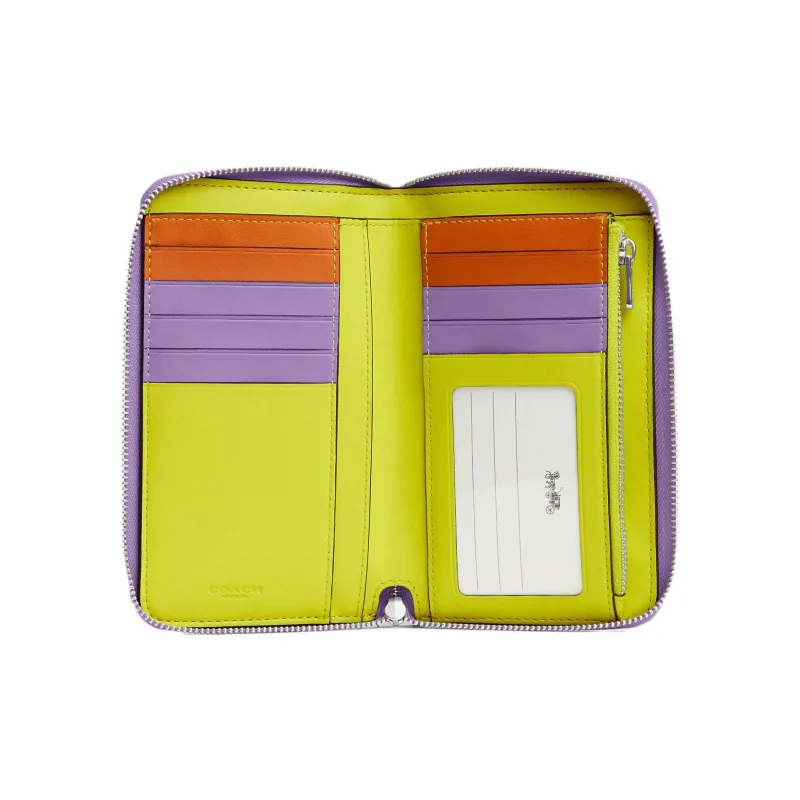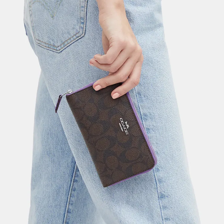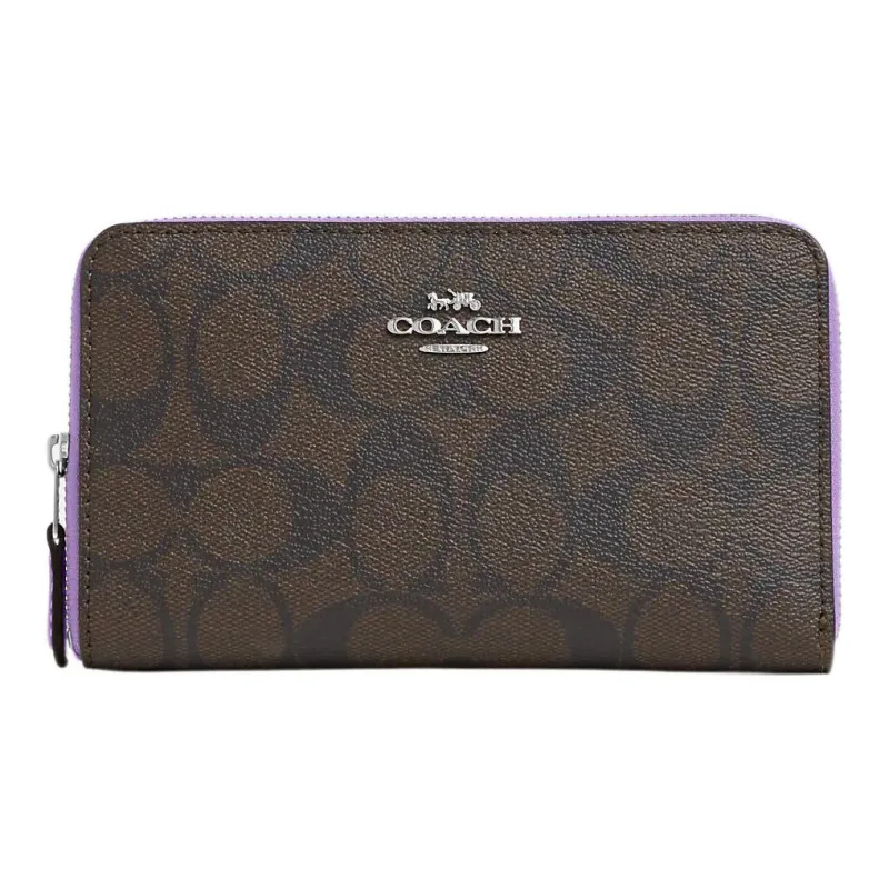 COACH Id Zip Wallet Холст с кожей Мелочь Кошелек Клатч Кошелек Средний Женские Кофе
