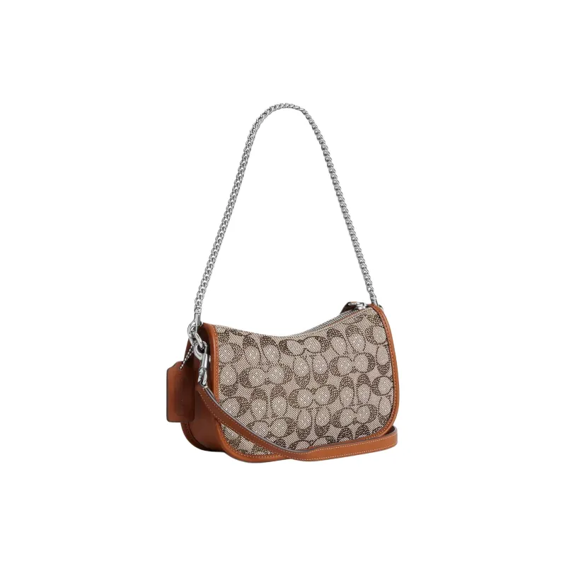 COACH Жаккард Портативная Сумка через плечо Сумка на плечо Средняя Женская Полированная Янтарная