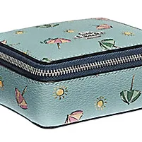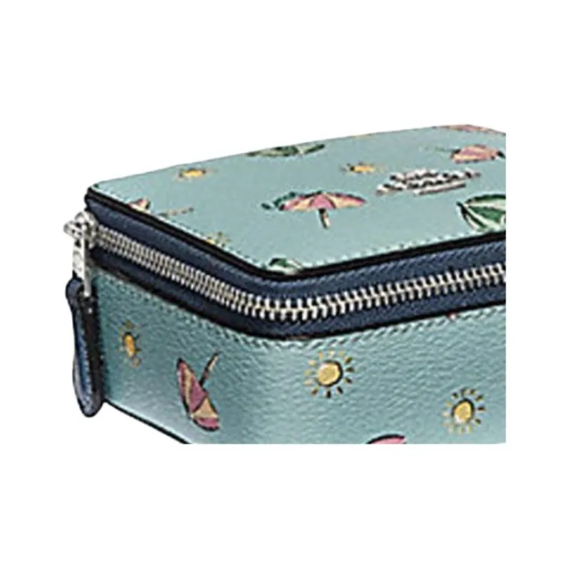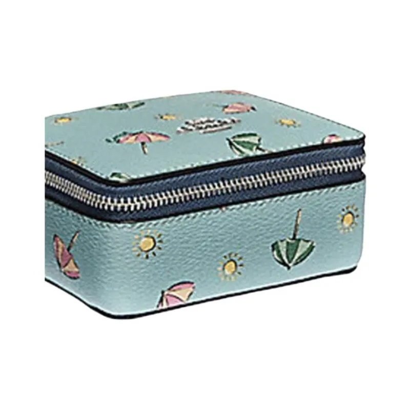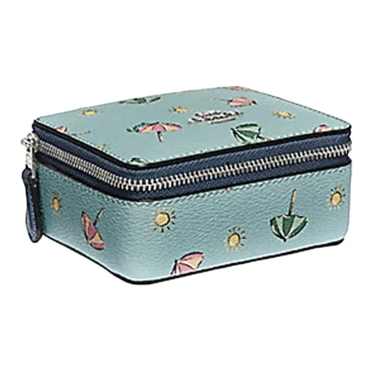 COACH Ювелирные украшения Bo Покрытый холст Шкатулка для украшений Хранение Коробка Мини Женские Аква-зеленый Серебряный