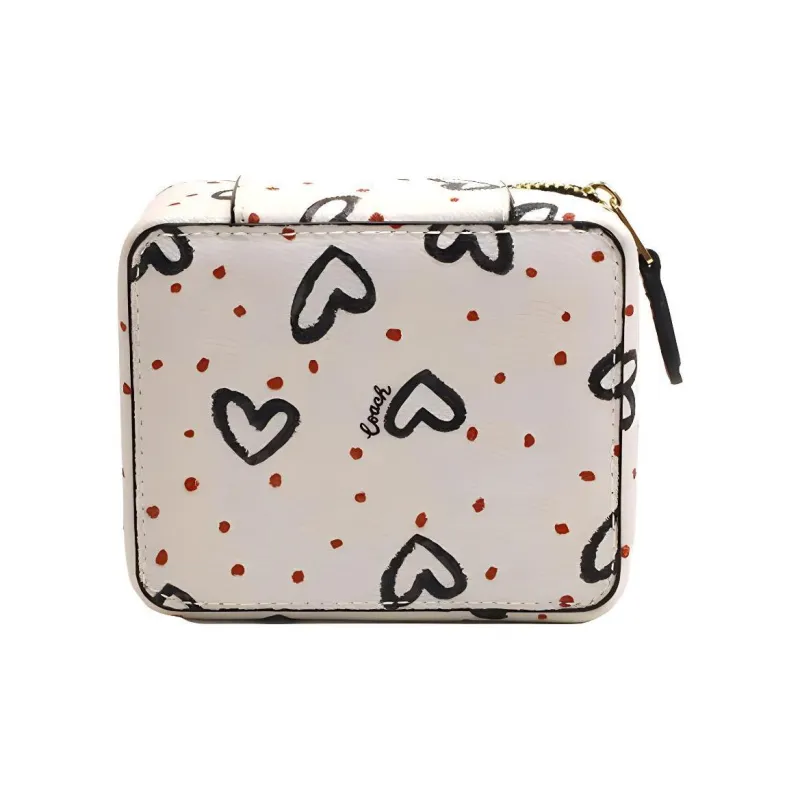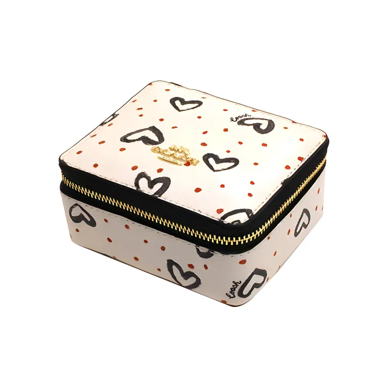COACH Ювелирные украшения Bo Покрытый холст с матовой кожей коробка для хранения косметичка женская мел белый и Black Heart с принтом
