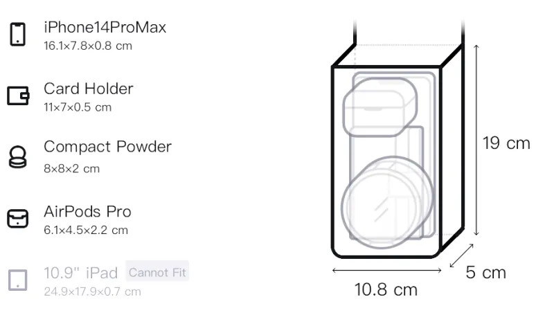 Д10,8*Ш5*В19см
