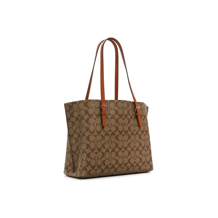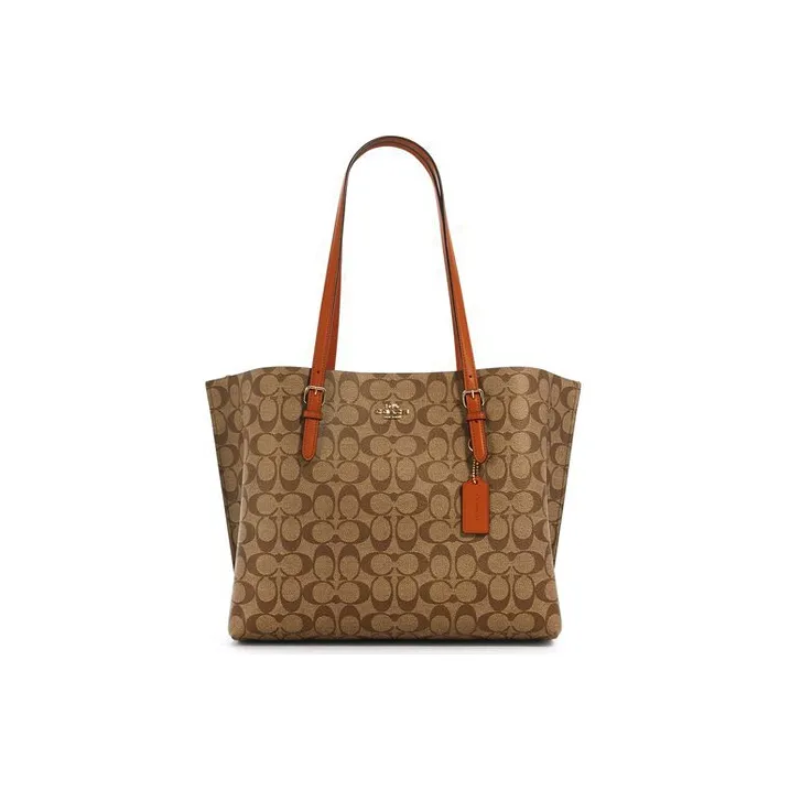 COACH Кожа Тоут Сумка Сумка для покупок Сумка Сумка через плечо Большая Женская Хаки и Оранжевая