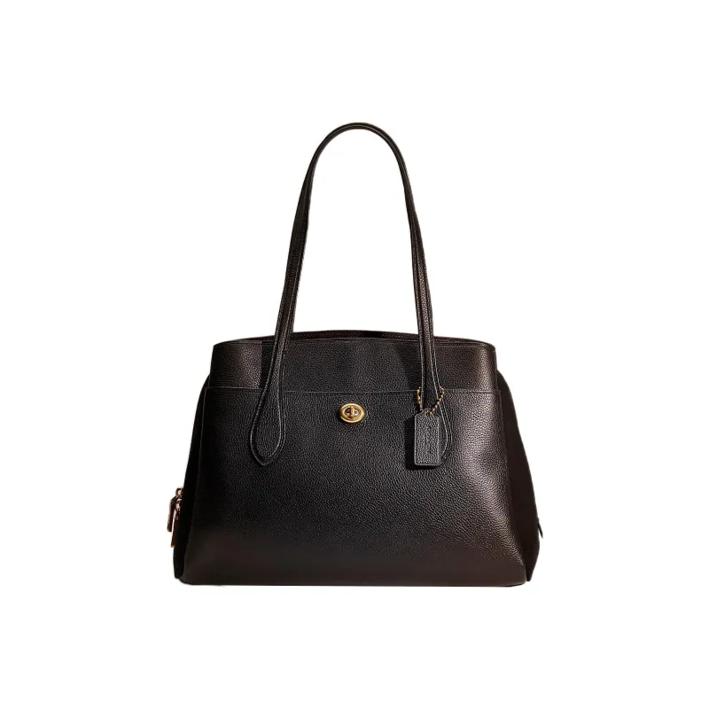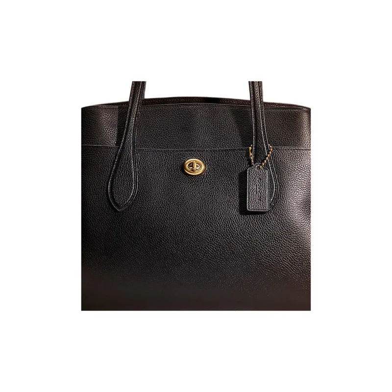 COACH Lora Пескоструйная кожа Тоут Сумка Сумка для покупок Сумка Сумка через плечо Женская Черная