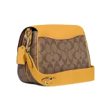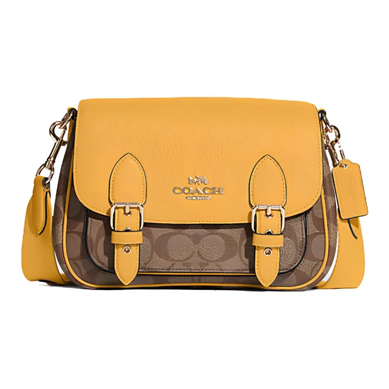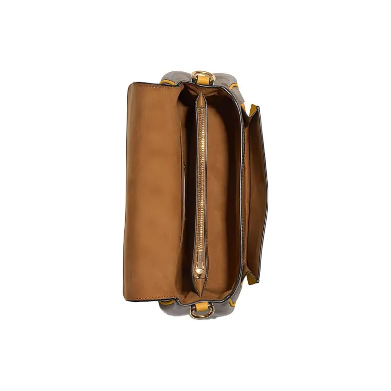 COACH Lucy Холст с кожей галечная кожа сумка через плечо средний размер женский коричневый и желтый