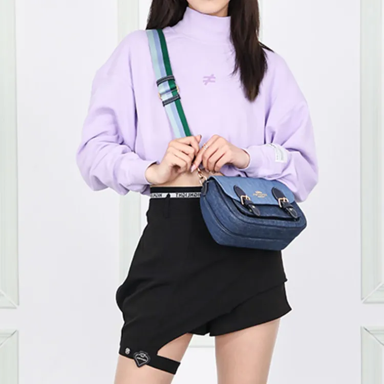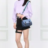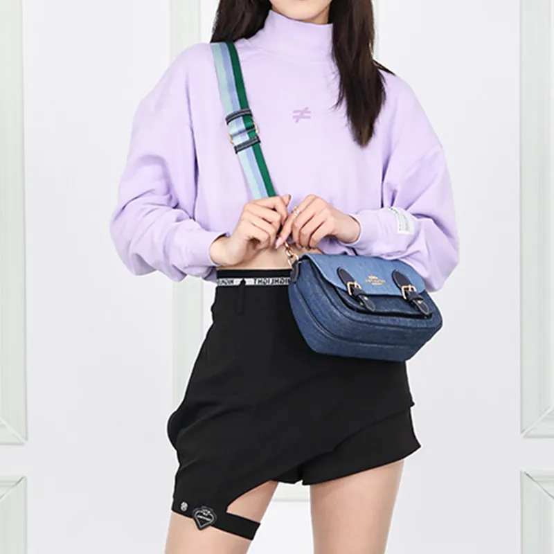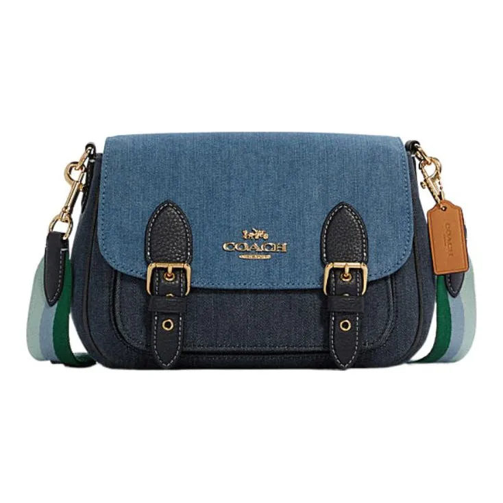 COACH Lucy Ткань с коровьей кожей Сумка через плечо Маленькая Женская Джинсовый синий