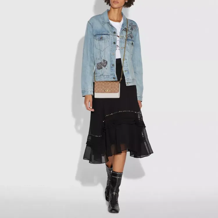 COACH Marlow Покрытый холст Сумка через плечо сумка Обычная Женская Коричневый Мел Белый